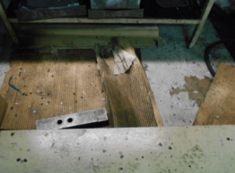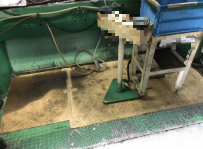 5S改善事例:床に引いているダンボールが油で汚れているので取り替え